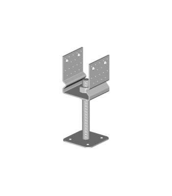 Statická svařovaná dvoudílná kotevní patka s možností výškového nastavení, vyrobená z ocelového plechu jakosti S235JR (pozinkováno), závitová tyč M24.